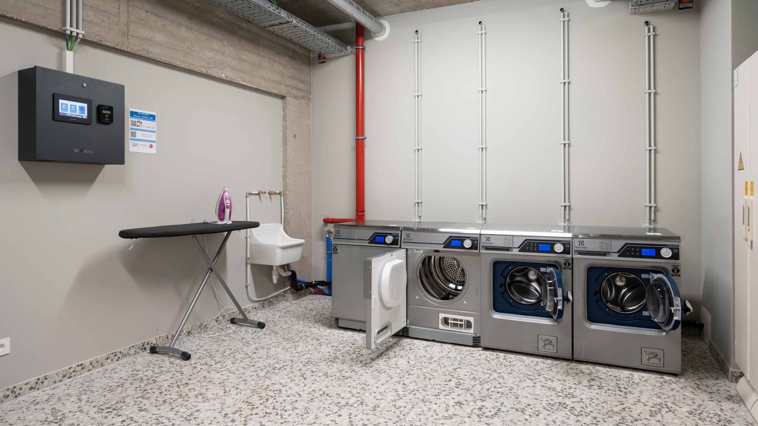 Hvis du har brug for at vaske dit tøj, er der et selvbetjeningsvaskeri på samme etage som lobbyen, ved siden af gæstekøkkenet. Vaskemiddel er inkluderet i prisen, kun kortbetaling. Åben fra kl. 07.00 til 21.00
