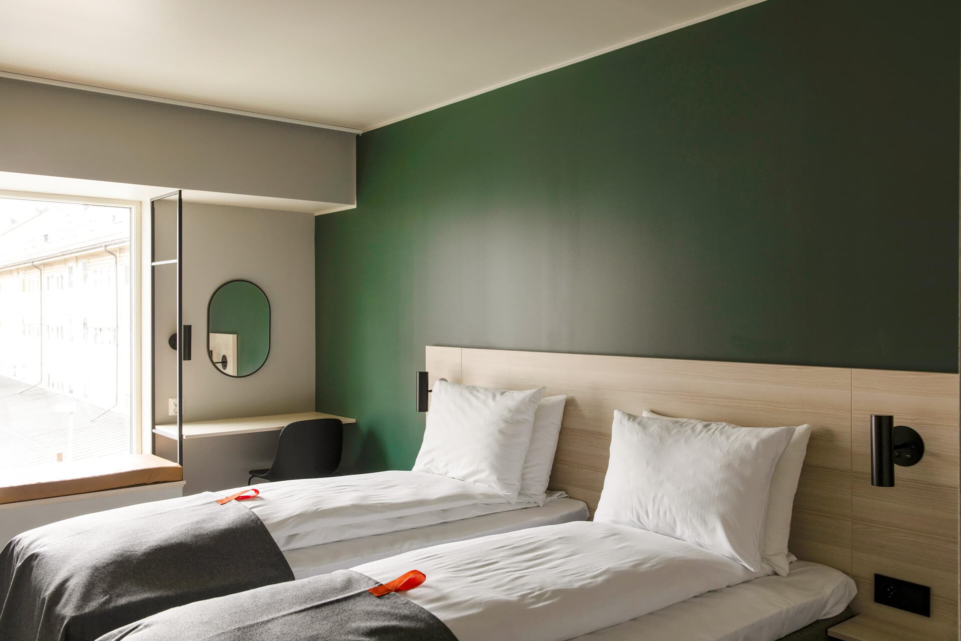 Show on mapCitybox Bergen Danmarksplass, an affordable design hotel just 8 minutes from the city center by Bergen Light Rail, offers self-service check-in, Scandinavian-designed rooms, heavenly beds, and completely free (and fast!) Wi-Fi. Relax in our TV lounge or prepare a light meal in our basic guest kitchen. Enjoy breakfast, lunch and dinner at the restaurant connected to our lobby. Citybox Danmarksplass isn’t just a good place to retreat; it's your starting point for a memorable Bergen adventure. Every room at Citybox ensures a comfortable stay with an excellent bed, small desk, modern bathroom, with essentials like soap, shampoo, and a hair dryer. Some rooms even feature a cozy seating area for relaxation.